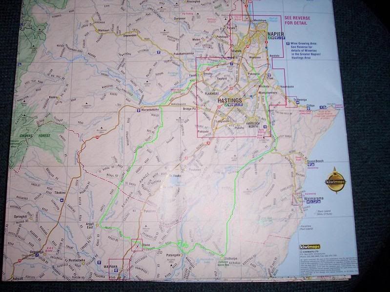 Basically goes from Napier then off HW50 thru Valley Rd etc to Argylle, thru Otane to our fav pitstop Patangata pub, then back the other way Kahuranaki Rd, the opposite way we normally go, to Napier/Hav etc.
